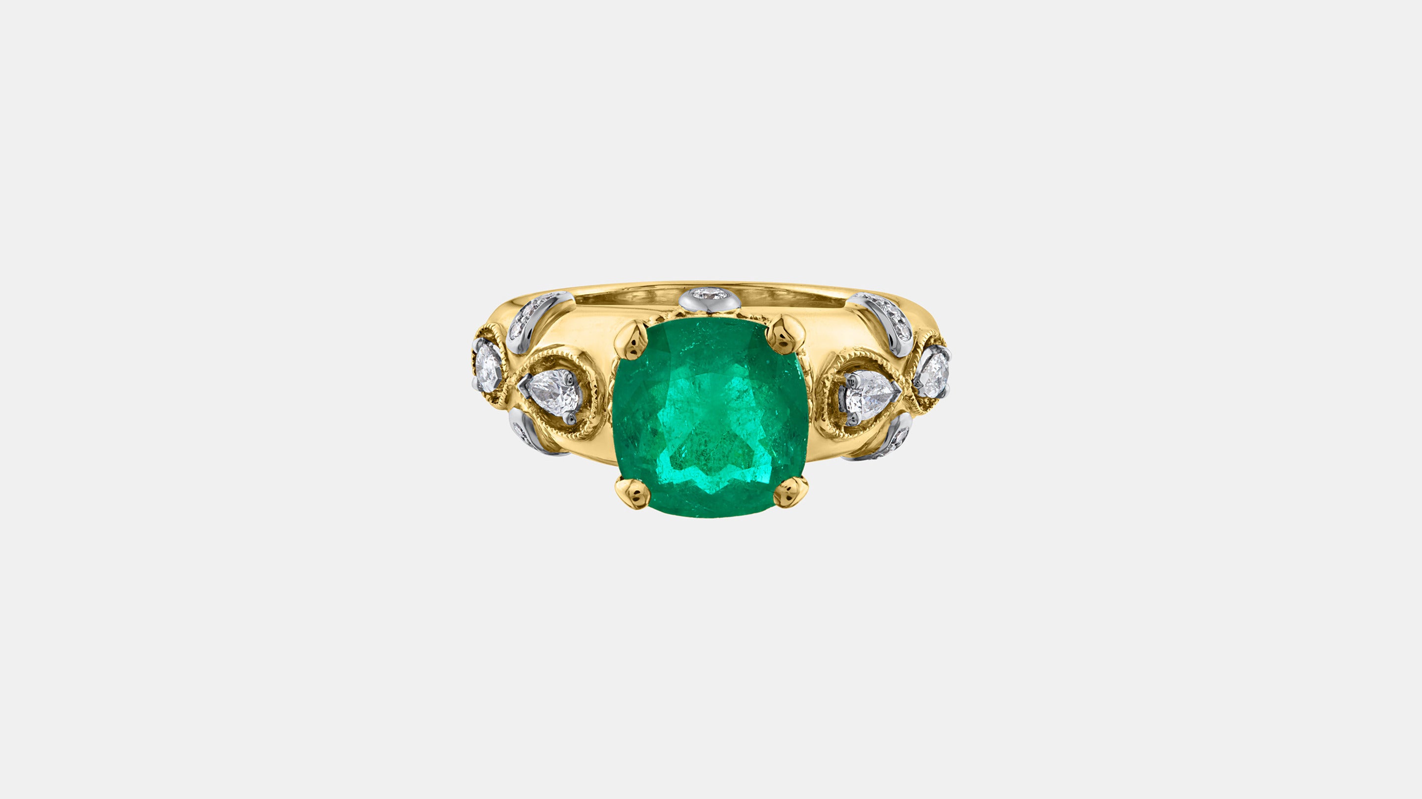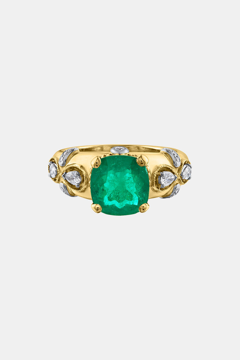 Bi metal Engagement Ring. 18KT Yellow Gold, Platinum, VSI Diamonds and 2.8Ct Colombian Emerald